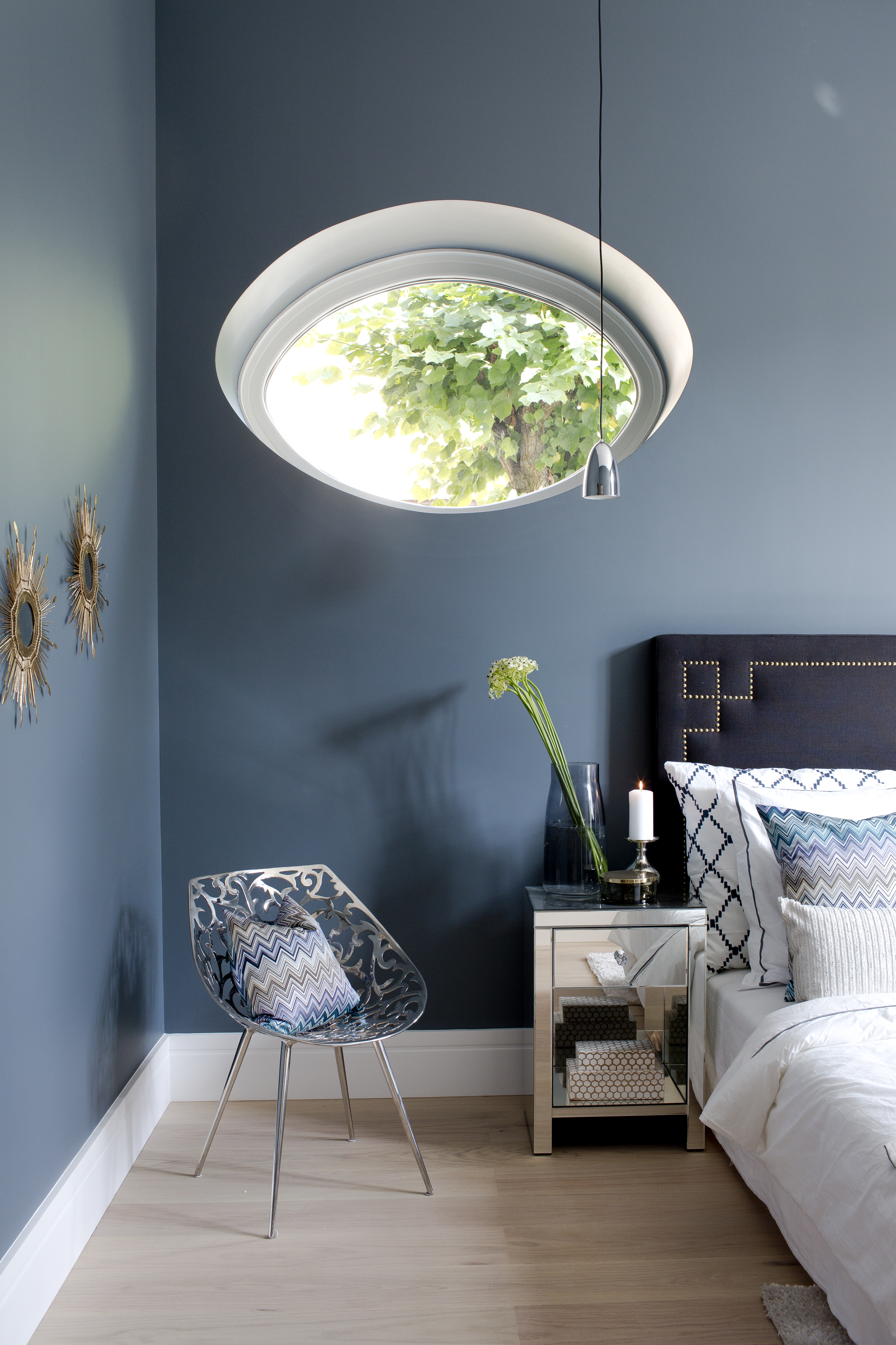 Dette er det eldste designtrikset i boka: Speil vil gjøre at rommet ditt føles større, lettere og luftigere. Bruk et stort speil for å gi illusjon av utvidelse, rommet vil umiddelbart virke større og lysere fordi det reflekterer lys. Det beste stedet å plassere et speil er på motsatt side av et vindu så det kan reflektere så mye lys som mulig. I tillegg til alle fordelene nevnt over så er speil også et designelement som kan hjelpe med å skape stilen du er på utkikk etter.